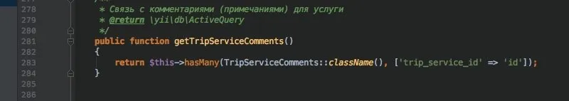 public function getTripServiceCommentsWithUser()