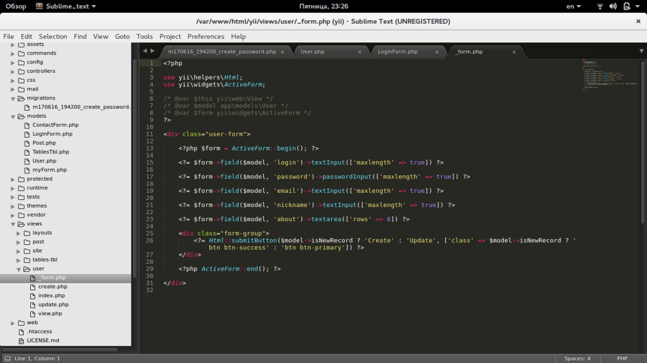 ั ะฝะต ะทะฝะฐั ะบะฐะบ ะฒ ะฑะตะนัะธะบ, ะฝะพ ัะบะพัะตะต views/user/form.php