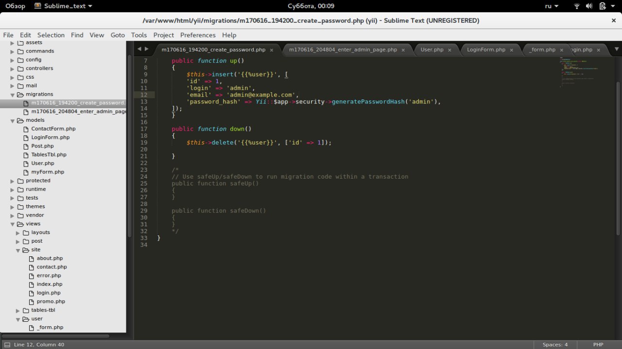 'password_hash' => Yii::$app->security->generatePasswordHash('admin'),