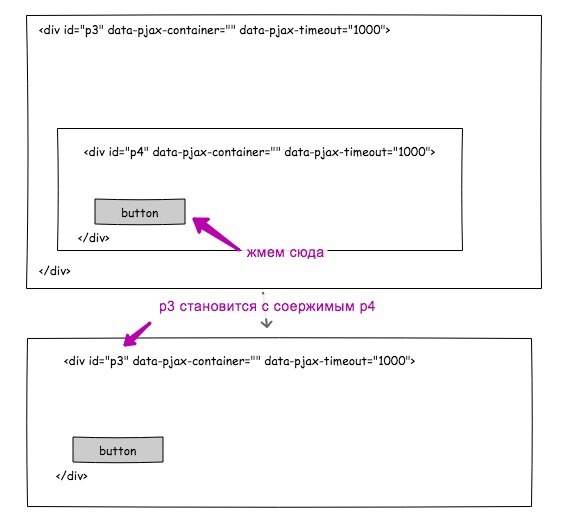 Смотри pjax-container, нужно указать контейнер для казждого вызова pjax