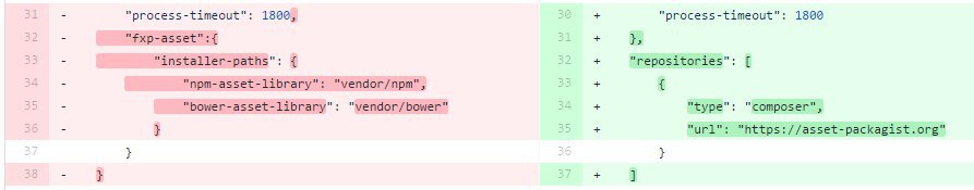 В мастер ветке отказались от fxp/asset-plugin в пользу asset-packagist.org