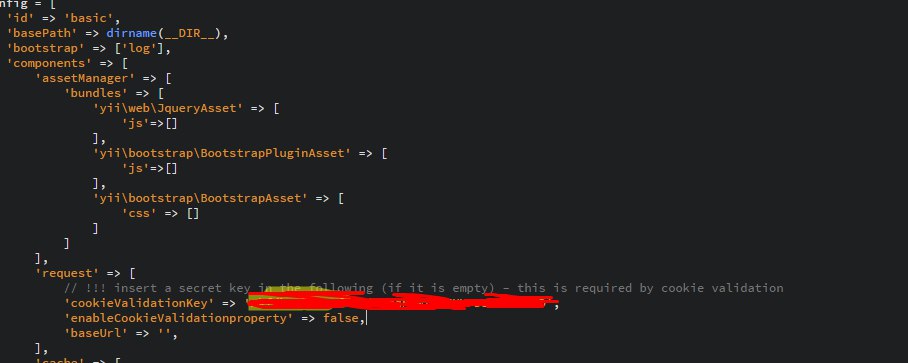 yii\web\Request::cookieValidationKey must be configured with a secret key.