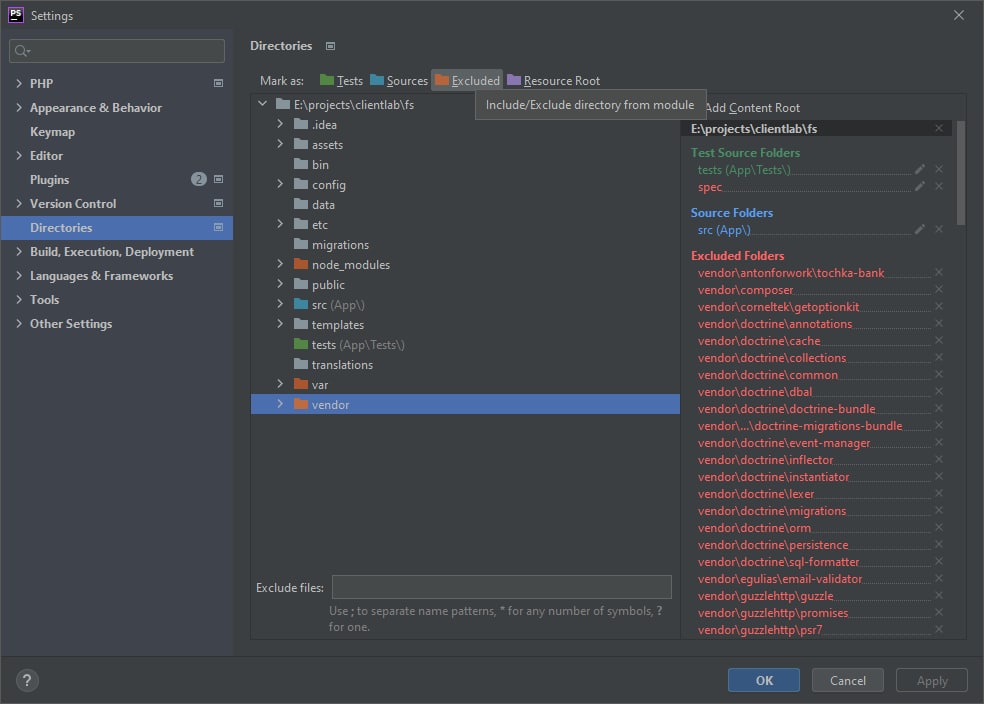 всем привет) а кто юзал крайнюю версию пхп шторм, как там отключить индексацию вендоров? заодно мб у кого есть плагин под 2ю симфу?
