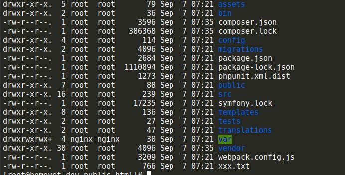 Unable to create the storage directory (/var/www/html/homevet/public_html/var/cache/dev/profiler).
