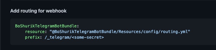 Блин.. народ, как с бандлами то работать?! Чет я ваще не понимаю ничего. Есть некий(BoShurik/TelegramBotBundle), не могу понять как заставить роут слушать webhook канал. Самое интересное, что маршрут бандла прописан по умолчанию. Но видимо я не понимаю как работать с его кодом.