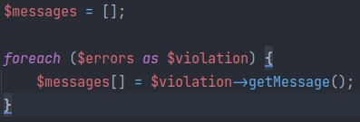 есть идеи как превратить это барахло в красивую строчку, одну? Потому что эррей_мап не работает с ошибками от валидатора симфы, там сраный объект какой-то.
