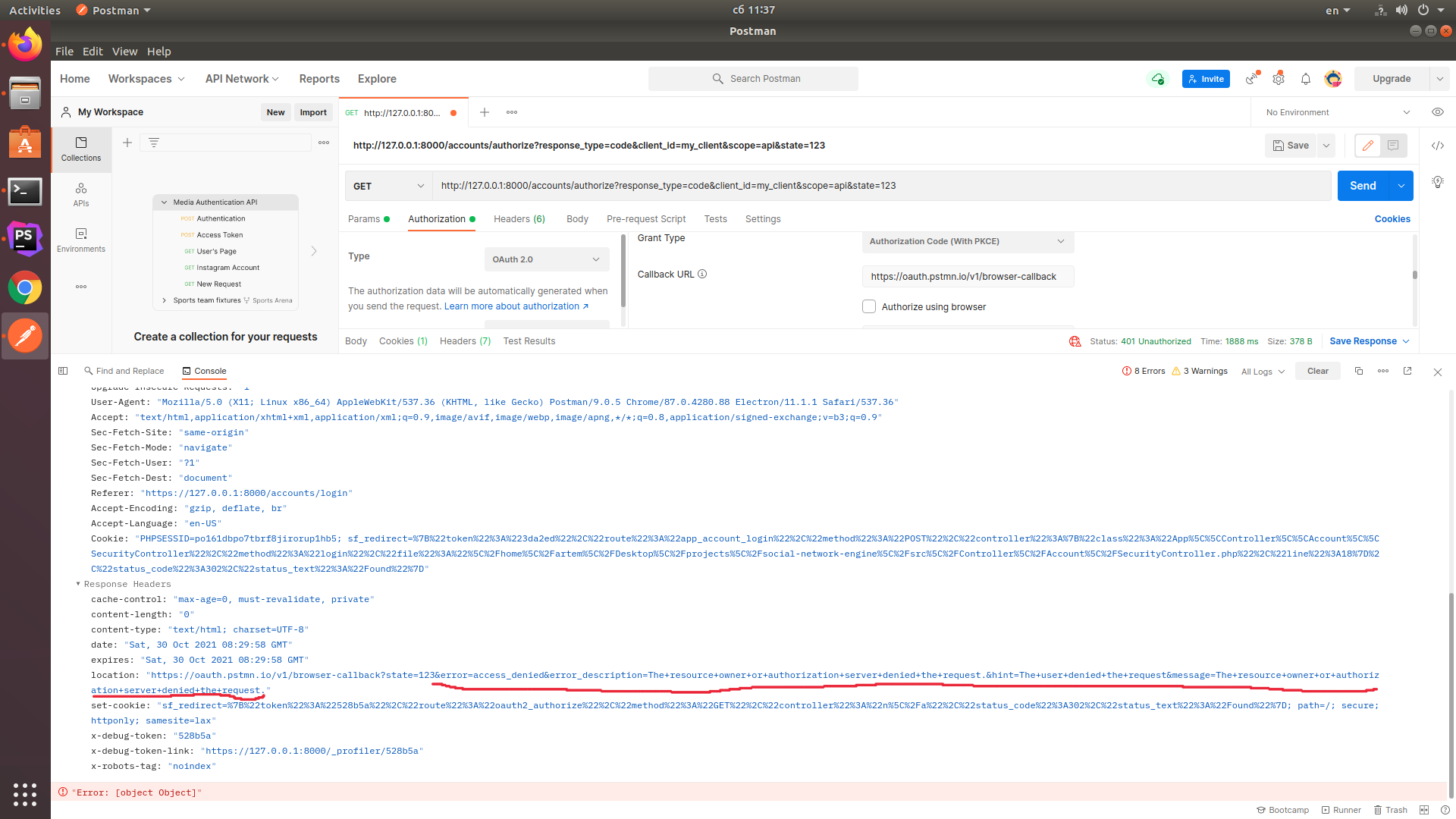 Это происходит когда я делал так. Все обязательнее поля я указа и клен у меня создан. эндпоинт /token у меня работает, проблеми возникают только с этим