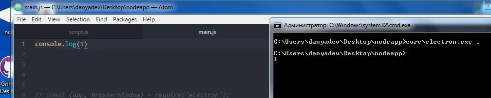 в терминате у меня тоже не выводится (console.log("...")). вывоится в иснтр. разработчика