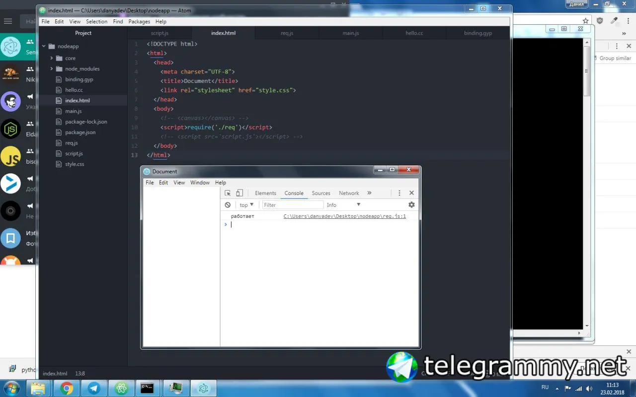я вот немогу модуль на с++ подключить, в node js все работает.