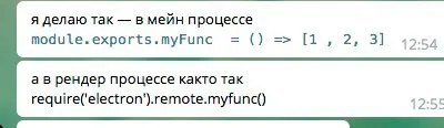 а в рендер процессе както так require('electron').remote.myfunc()