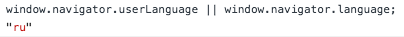 На запрос: console.log('lang:', window.navigator.userLanguage || window.navigator.language);