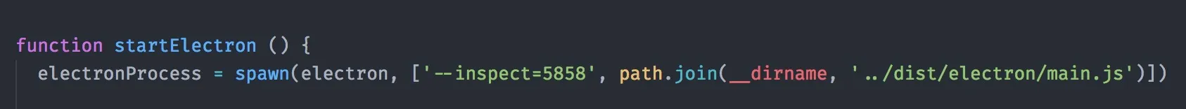 Когда electron запускается в dev режиме, он запускается через родительский процесс ноды, чтобы следить за измененями main и render процесса webpack'ом. Там передаются аргументы для electron. Какой файл запускать и какой порт для инспектирования....никак не могу нати в документации на электрон API на эти команды...