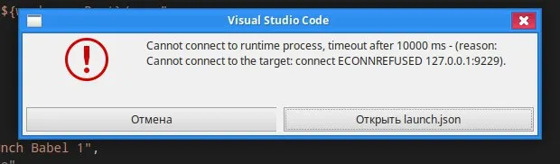 процесс запускается, приложение работает, но через 10 секунд вылетает процесс с такой ошибкой в VSCode: