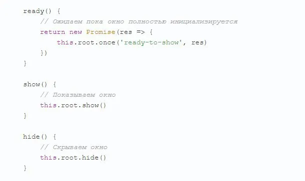 Половина кодовой базы твоего приложения заворачивает ивенты и методы окон электрона в методы классов. Причем, мало того, что она это делает, так ты еще в каждом классе это повторяешь, не используя возможности ООП, которое ты заюзал.