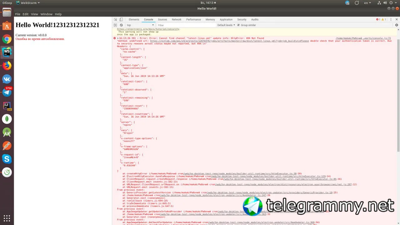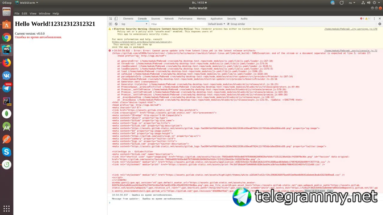 Всем еще раз привет, столкнулся с проблемой, что не могу реализовать кроссплатформенный auto update, пользовался этим гайдом - https://github.com/SychDan/ElectronTest , в итоге получаю ошибку, прилагаю скриншот с ошибкой. Мб кто-нибдуь сталкивался с подобным?