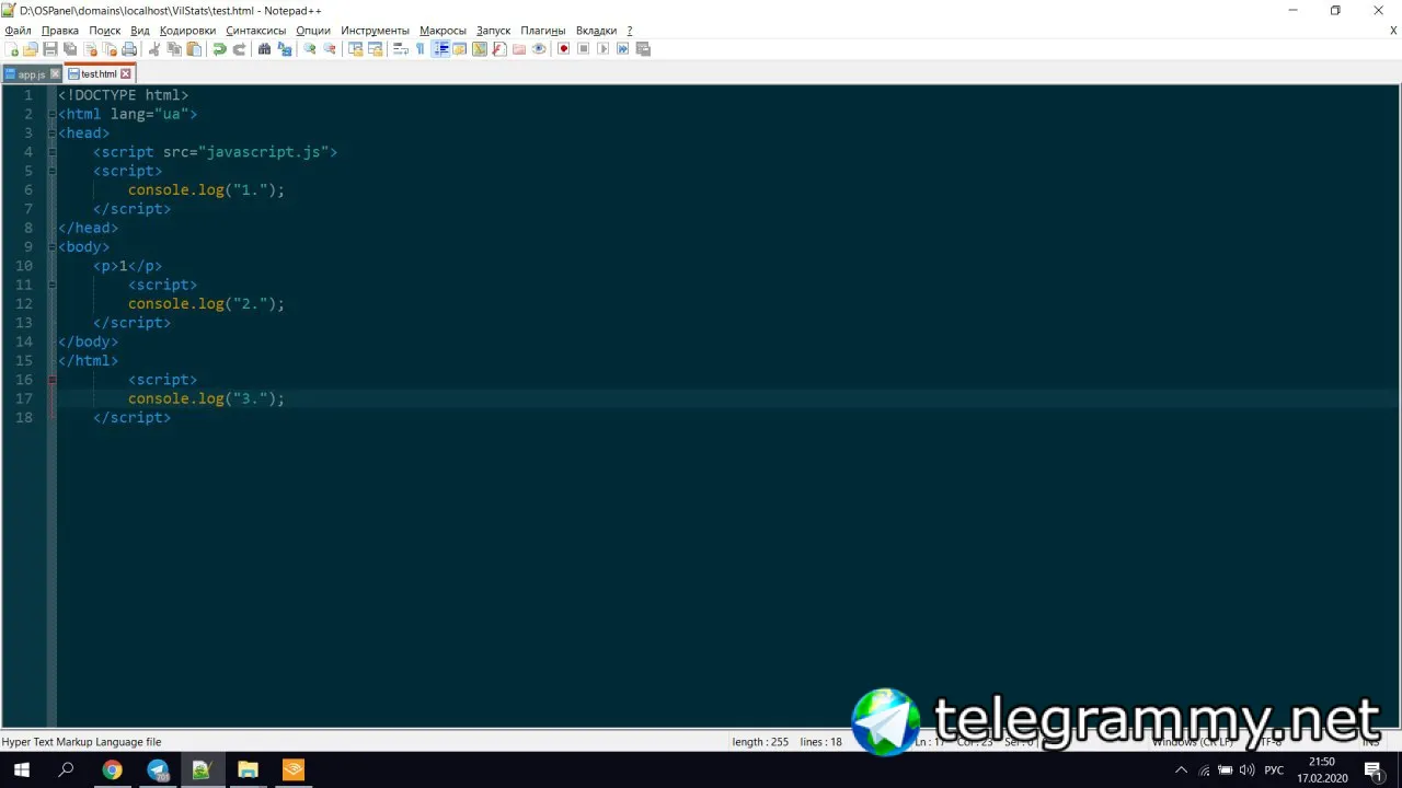 А ты можешь в страницу в хтмл вставить console.log ?