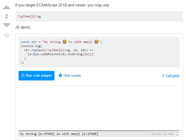 @AleshaOleg Олег, подскажи пожалуйста вот ещё что🙏🏻 Вот пришла на вход строка и я не знаю где там могут находиться смайлики. Как можно определить смайлик, чтобы потом закинуть его в метод String.raw?