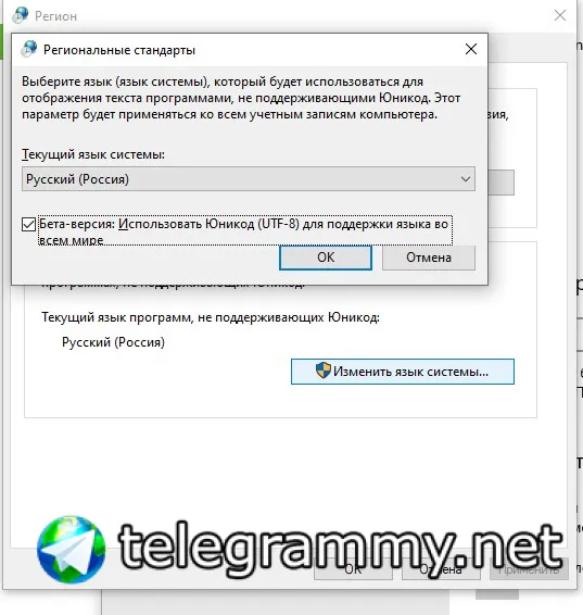 Там надо в дополнителных поддержках локали включить "Поддержку UTF-8 beta"