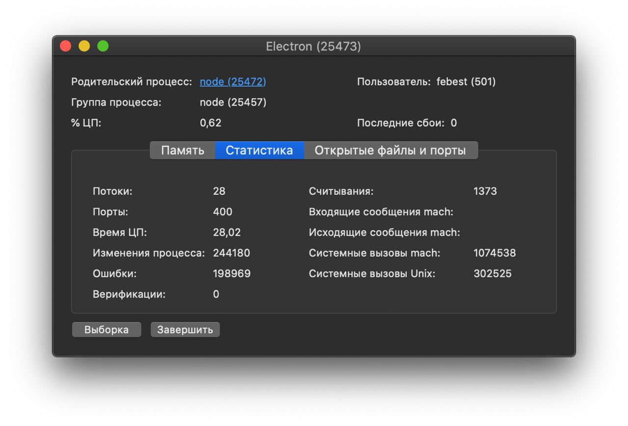 Это процесс Electron'a, кто знает, в чем беда? Или такое количество ошибок нормально? Они пополняются по тысячи, или даже десятками тысяч каждые 5 секунд.