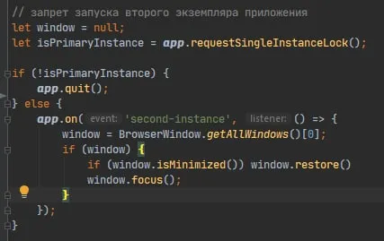 у меня почему то срабатывает const gotTheLock = app.requestSingleInstanceLock();