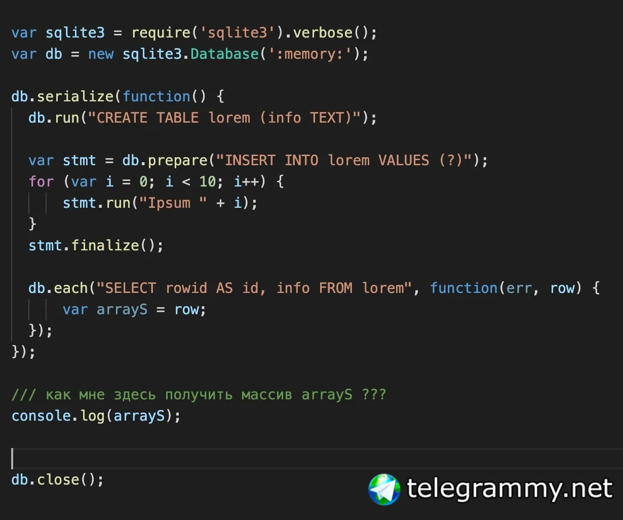 Объяви переменную до db.serialize
