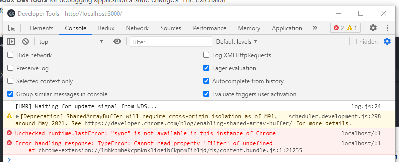 Всем привет! Может кто подсказать как нынче подключается redux devtools к electron? Пробовал через electron-devtools-installer и session.defaultSession.loadExtension. В обеих случаях получаю ошибки в консоли. Расширение вроде и работает, но до первого решреша окна "No store found. Make sure to follow the instructions."