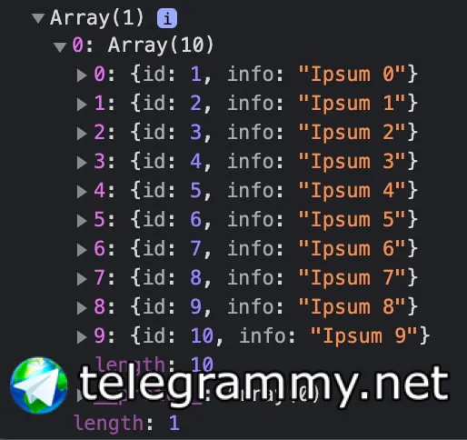 массив в массиве как и после пуша, arrayS[0] должен показать вложенный масив