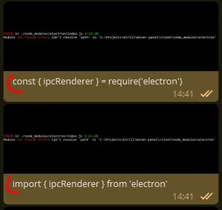 И импортить пробовал ipcRenderer и через require, везде ошибку выдают