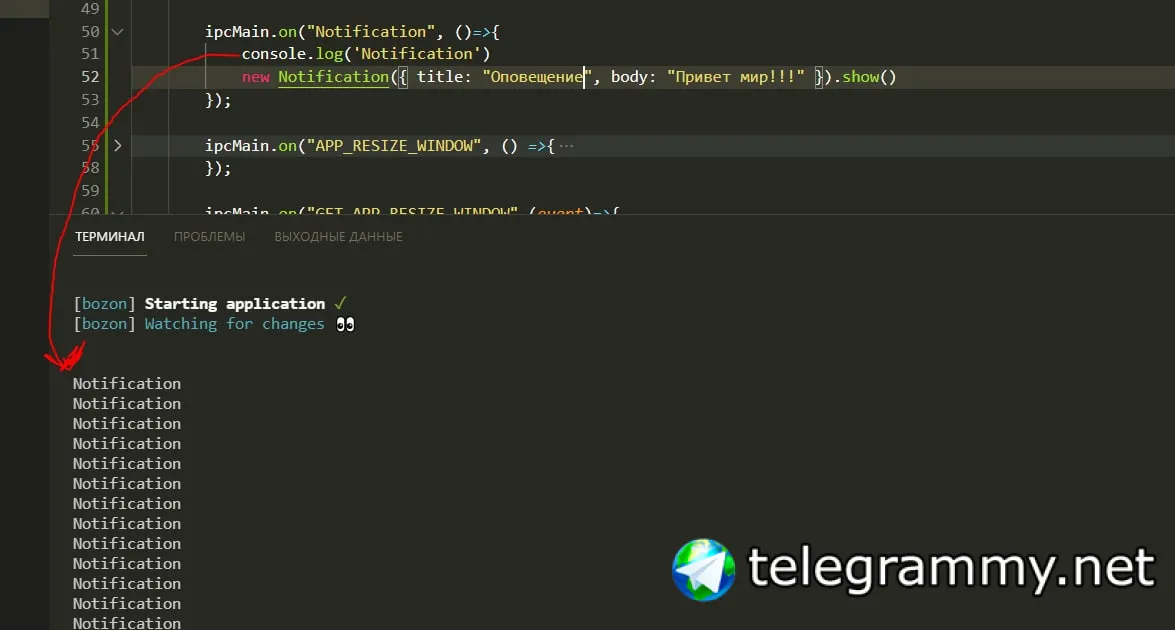 вопрос new Notification в main процессе не отрабатывает событие как бы вызывается но window не оповещает ни о чем