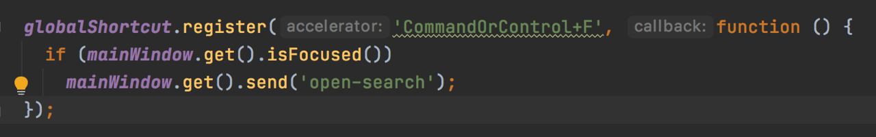 Кстати пока про шорткаты речь, делал кастомный на маке на commang+F и теперь это событие электрон всегда перехватывает.... например в браузере поиск больше не запускается. Не знаете как обойти это? Пробовать именно проверять окно на фокус, не помогло.