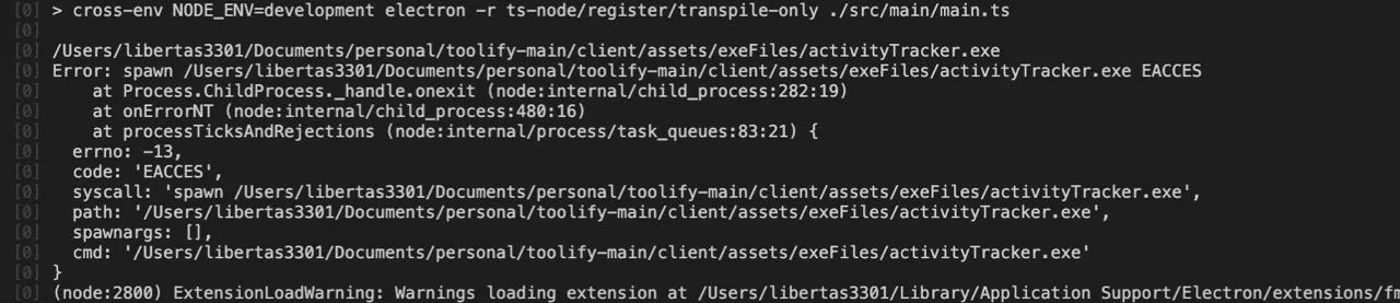 я пытаюсь через child_process exec но там выходит ошибка и я не особо понимаю как ее решить