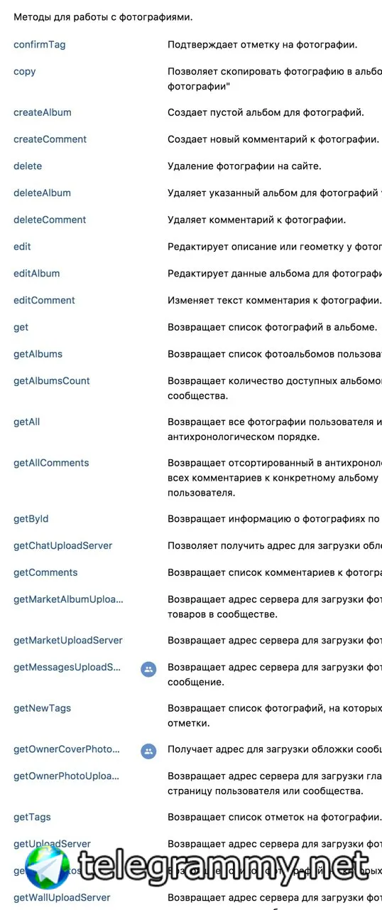 для отправки фотографии на сервер не исользуются методы api