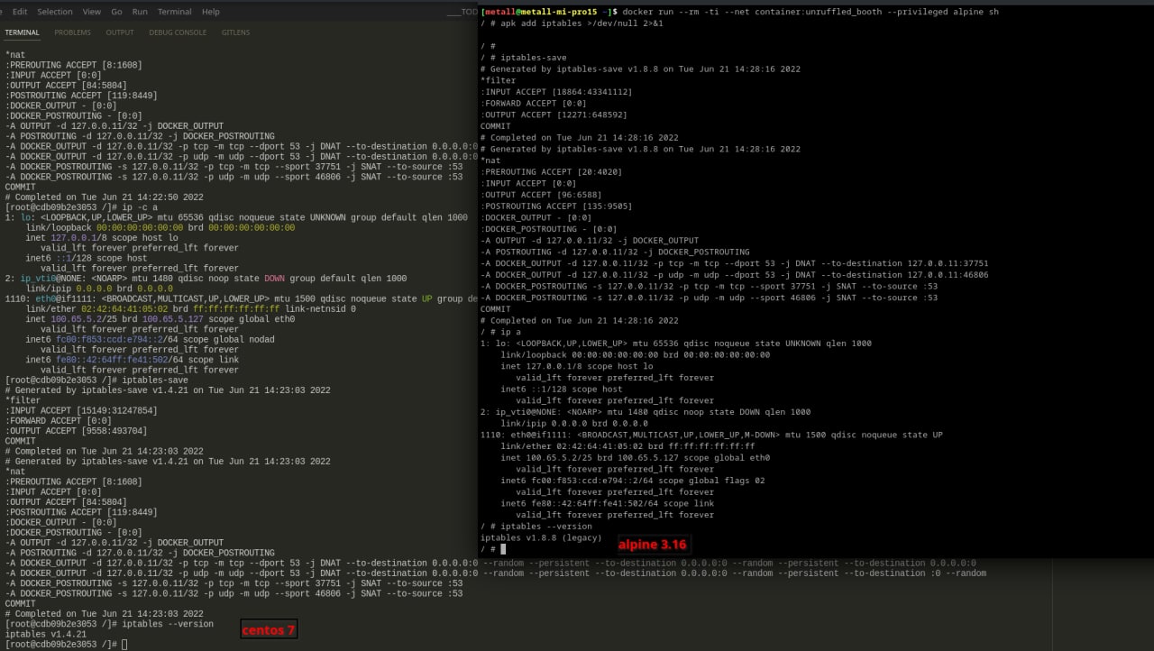 самое занятное было, конечно, контейнеры с 7 кентосем овер 8 хоста. оказалось, что iptables-legacy на самом деле глубоко где-то есть, просто не ставятся.