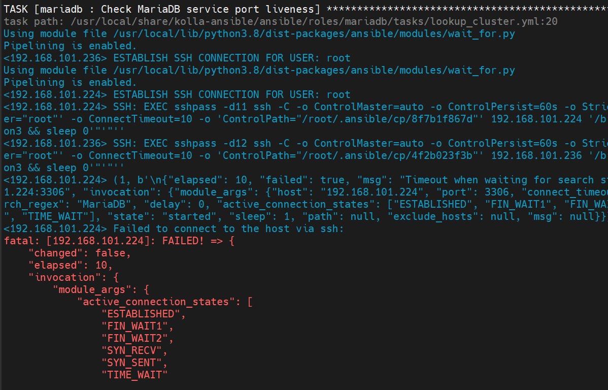 Здравствуйте коллеги, ошибка выходит TASK [mariadb : Check MariaDB service port liveness]