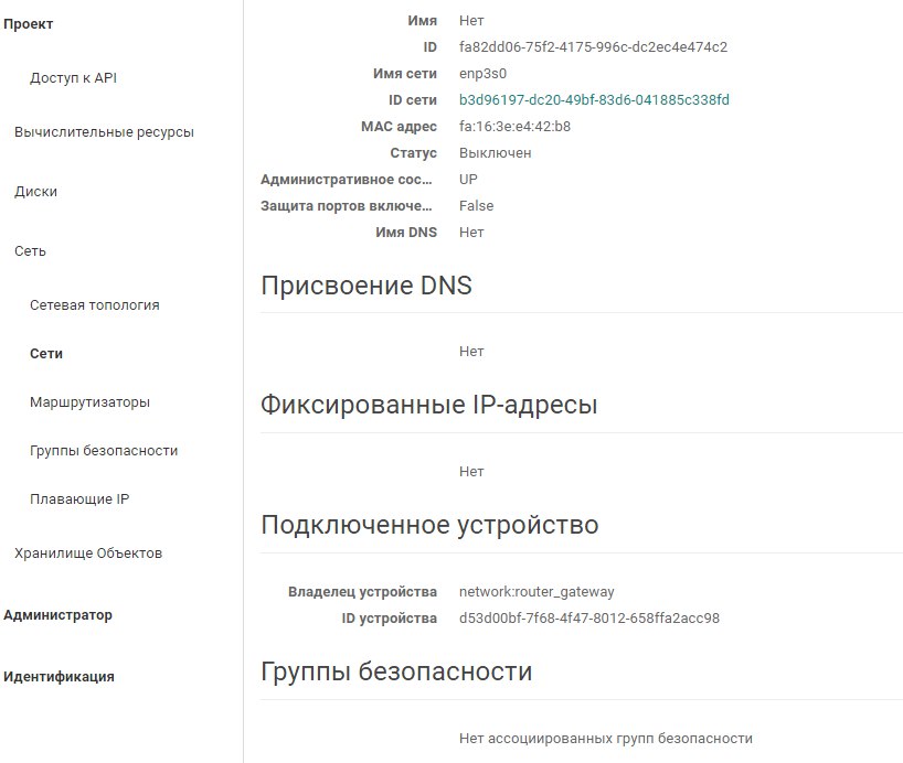 Всем привет, подскажите как правильно подключить внешнюю сеть через маршрутизатор для доступа внутренней сети в интернет, я подключая шлюз для роутера который является внешней сетью, после подключения openstack автоматически создает подсеть, и порт, но у порта статус "выключен", я не понимаю как это сделать