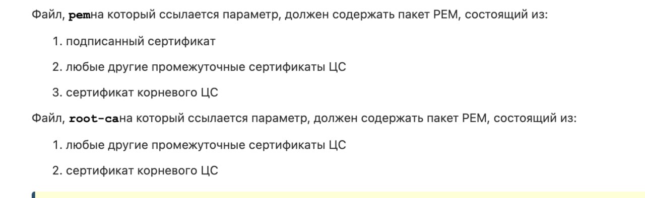 но у меня серты в crt нужны в pem если прям по мануалу. Если как все советуют просто закидать их в текстовик с разрешением pem то он так не хавает их