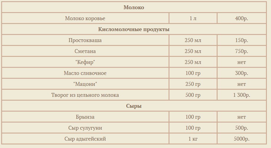 Как пример пришли на ум цены в "магазине крестьянского хозяйства Германа Стерлигова": http://sterligoff.ru/shop.html#id2