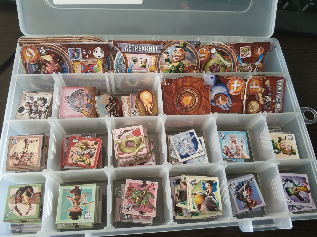 Каждая из сторон токенов на своем листе картона, после того как порезали - склеили между собой