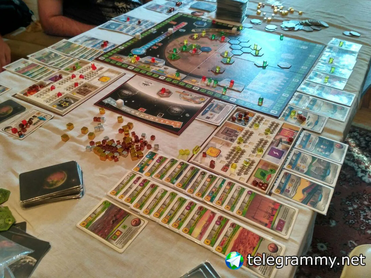 Весь стол захватить не смог,у всех порядочно карт, но у меня (желтого) больше. Если у всех стратегия на поразвиваться, то никто не спешит рашить, ведь ты полностью не раскроешь потенциал. И можешт проиграть, ведь пока качаешь марс другие берут очки. Первые несколько ходов могут уйти на очень медленное развитие, например я в первых ход купил 9 карт. И построил только 1. Соответсвенно имел 21 мегакредит на следующий раунд. Потом снова драфт и снова покупка трех карт. А это значит, что денен впритык на постройку Катапульты с земли. А это уже третье поколение и новый драфт с новыми покупками и раскачкой.