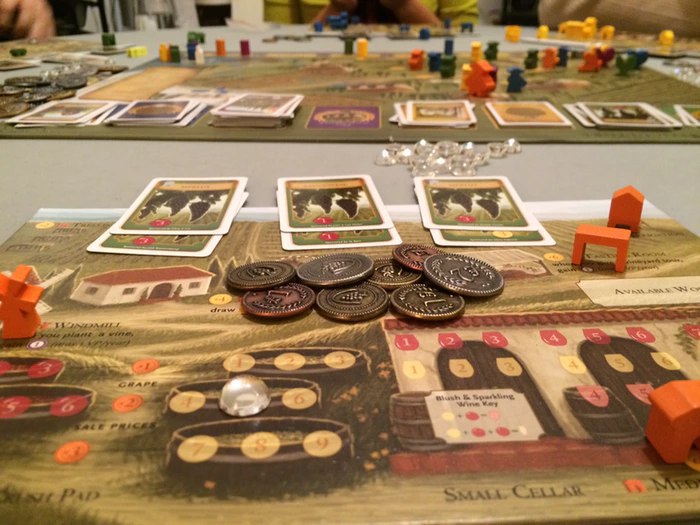 Первую игру мы, кажется, тупим, и играем очень долго (уже два часа, вдвоем), но здесь много действий, и хоть логика/механика достаточно быстро ловится (она простая, как двери), но вот чтобы зарабатывать очки и понять строящийся движок — я только щас до этого дохожу)