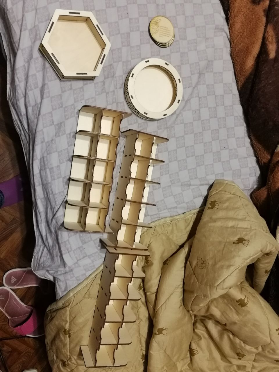 Есть 2 лишних картхолдера и один деревянный круглый дайс трей