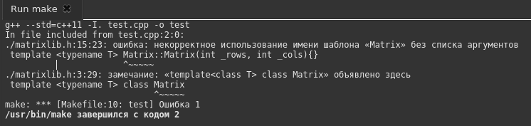 ./matrixlib.h:15:1: ошибка: некорректное использование имени шаблона «Matrix» без списка аргументов