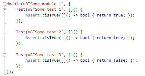 Пилю тут движок юнит-тестирования, пока наружу примерно такое апи получается: