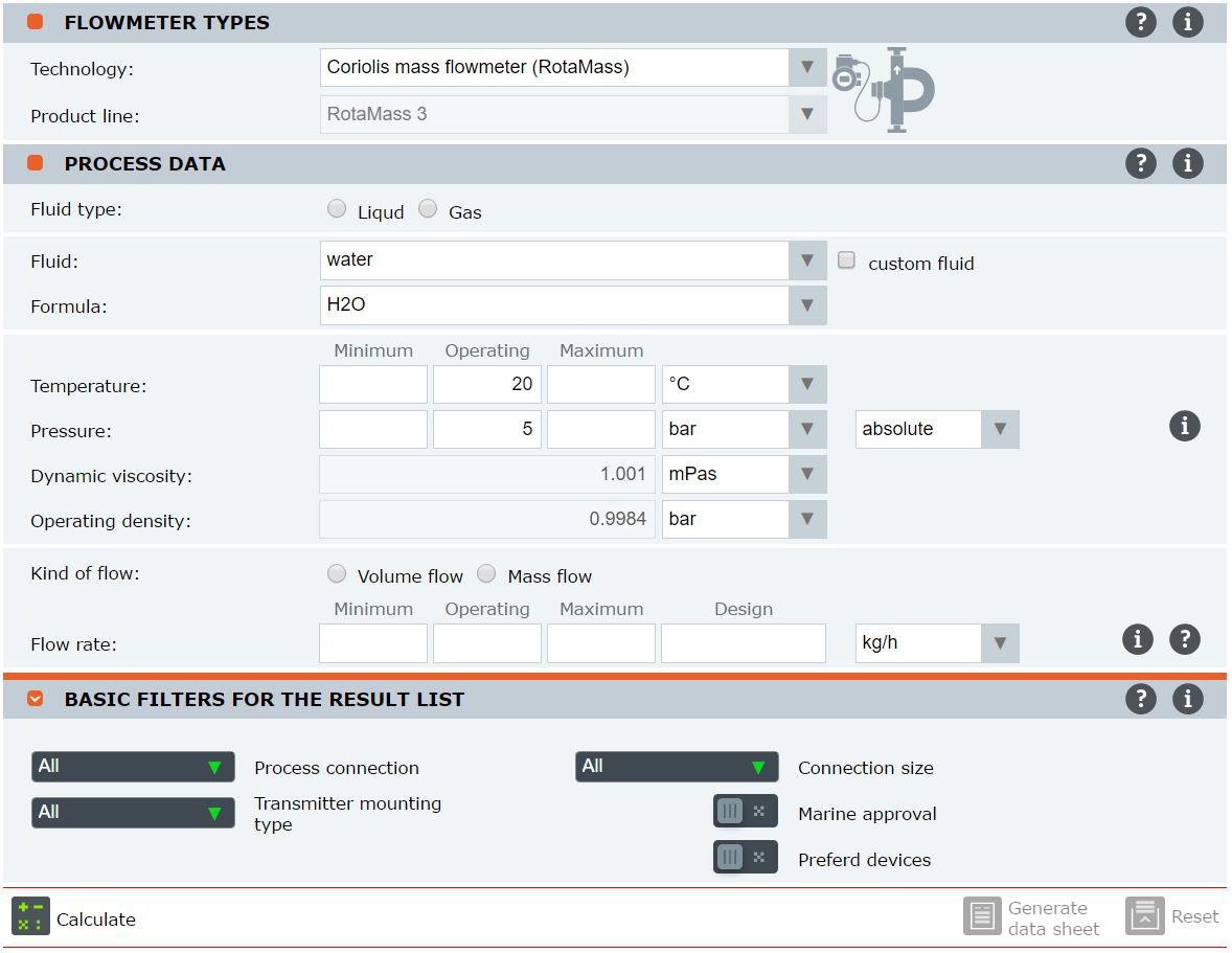 При вводе новых данных в поля Temperature и Pressure (Operating), должно обновляться поле Operating density по следующей формуле: