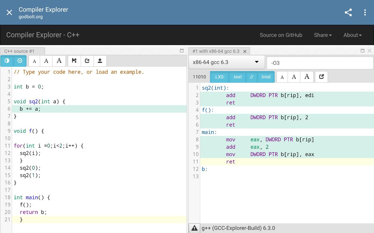 он все полностью заинлайнил и заоптимайзил до b += 2