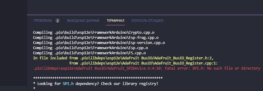 ругается на зависимую либу spi.h теперь, которой конечно же нет и браузер библиотек ее не находит чтобы скачать