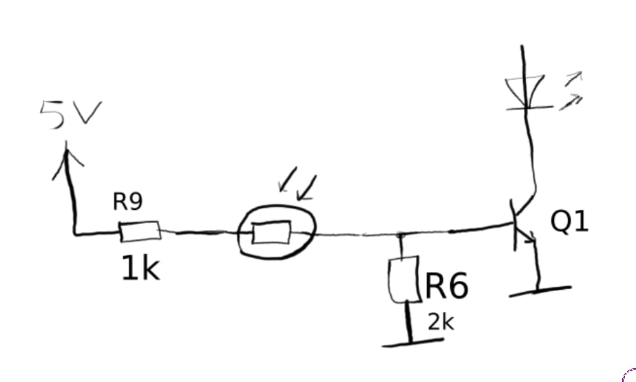 и, правая ножка фоторез должна быть соеденена с тем выводом Q1, который ближе к надписи R6