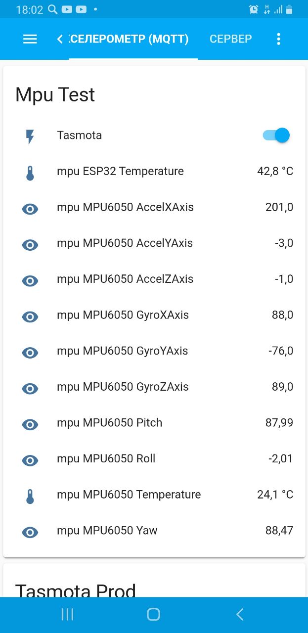 ha.islife.ru добавляли датчик esp32+mpu6050+mqtt и использовали сборку tasmota. Были ошибки и постоянно был переконнект к home assistant. Нп прошлой неделе испрпвили баг.