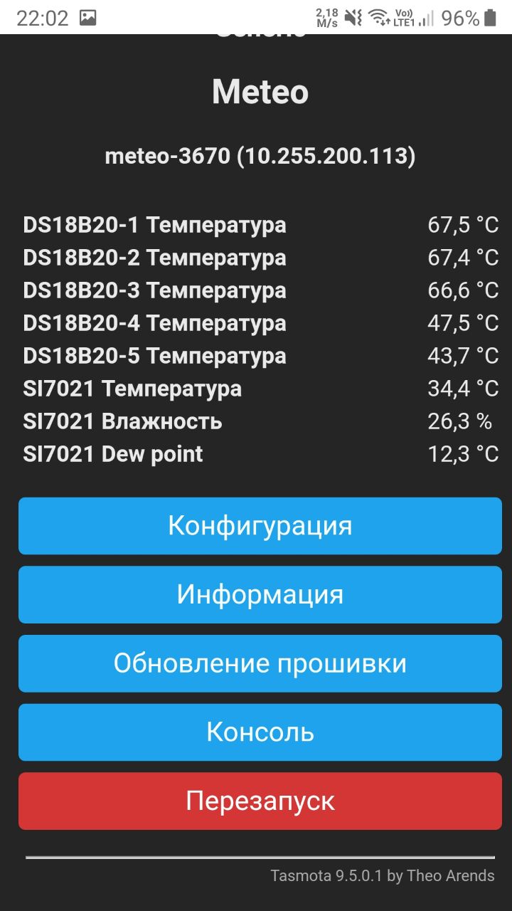 Добрый день! Стоит задача управляемой розетки на участке, за одно одним выстрелом убить двух зайцев, подключу ds18b20 к плате так как розетка с esp8266. Заранее хочу сказать, что датчик температуры хочу установить внутри корпуса, так как не эстетично будет если он будет выведен наружу, на практике попробовать, возможно откалибрую на градус ниже, так как esp будет чуть подогревать корпус. Я же не думаю, что если датчик будет в корпусе, будет показывать ерунду, уведу его в противоположный угол от esp