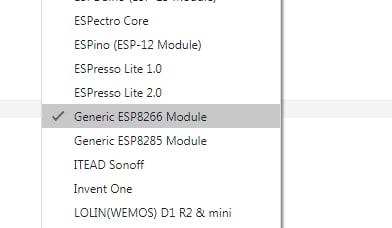 Для прошивки выбираю Generic ESP8266. Всё норм.